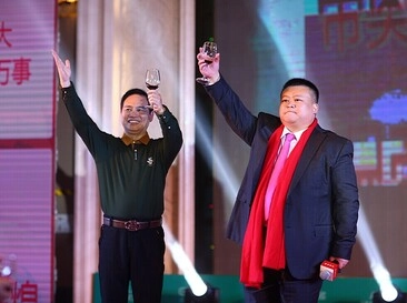 董事长薄坤发、总裁杨爱珠夫妇与代理商敬酒