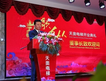 开业仪式上,董事长薄坤发发表了慷慨激昂的讲话,他表示:“天奥电梯(中国)有限公司将以引领中国超高速电梯技术的高远战略布局于市场,以提供全方位的智能电梯服务为经营方式,以缔造世界一流的电梯品牌为目标,以最专业的精细化服务为理念,将自身打造成为极具国际化、规模化、定制化、高端化的大型电梯企业,为人类的垂直交通运输提供无与伦比的服务!”